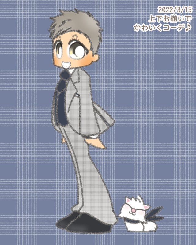 明るめスモーキー系紺の上下(ジャケットは《横からひらひらモード》)、