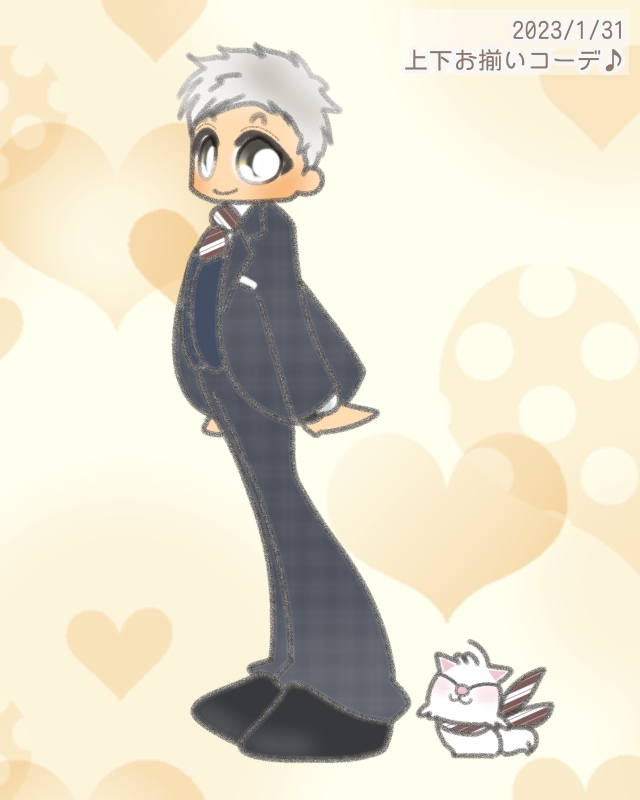 ネクタイとベストでバランスを整えてるのがポイントです♪