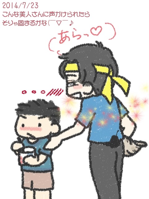 かき氷(だと思う)を持ったまま固まっちゃう男の子が