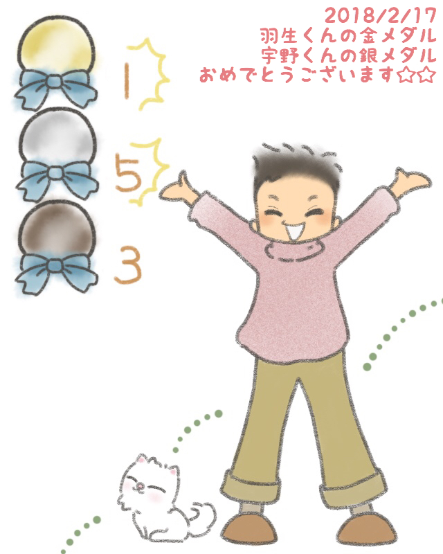 ボードの《金メダル欄》に羽生くん、《銀メダル》に宇野くんが追加されますね。