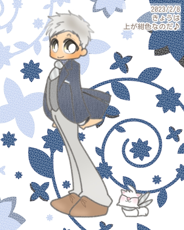 かすり風濃紺の《横からひらひらモード》のジャケット、