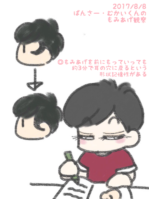 本日のイラストは「むかいくんのもみあげ観察( ̄▽ ̄ゞ」