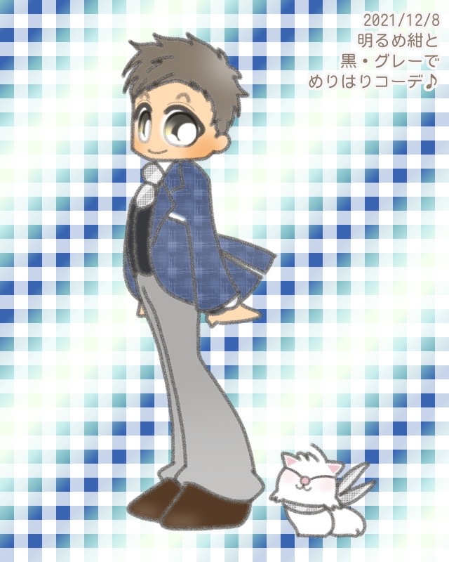 グレーに白と黒の大きめ方眼模様の《横からひらひらモード》のジャケット、