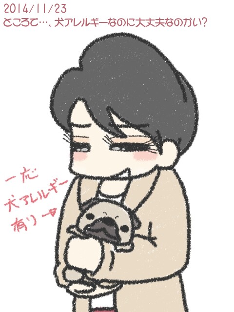 本日のイラストは「“いぬっころ”が“わんこ”を抱っこしとる、の図♪」