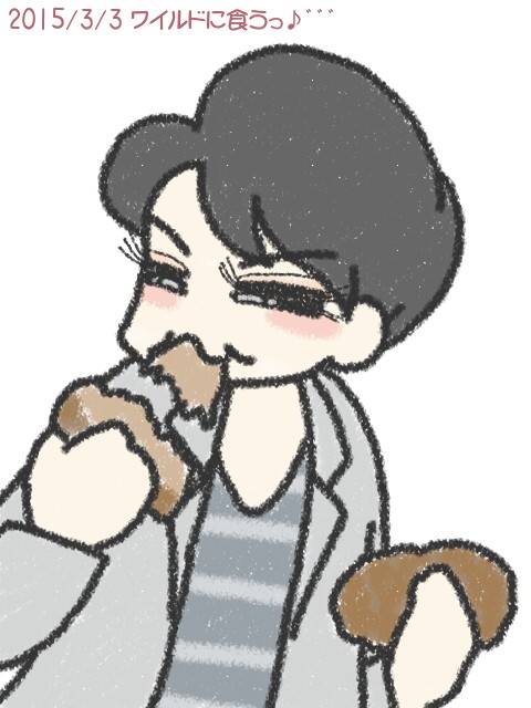 ふすまパンをワイルドに食べとるよしむぅちゃん描いてみました( ̄▽ ̄♪