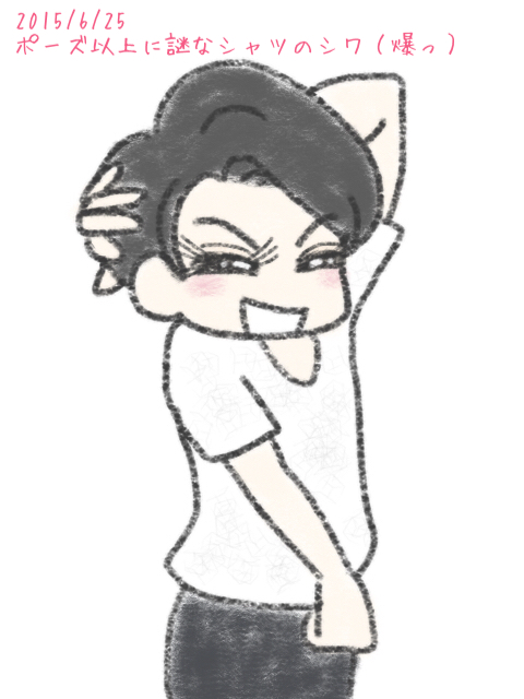本日のイラストは「シャツのシワは“デザイン”なのか“単なるシワ”なのか…( ̄▽ ̄ゞ???」