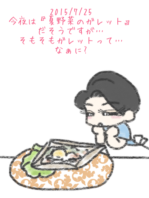 本日のイラストは「今夜は“夏野菜のガレット”つくります( ̄▽ ̄ゞ」