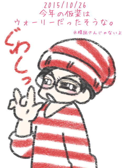 ウォーリーに仮装しとるよしむぅちゃんですが、