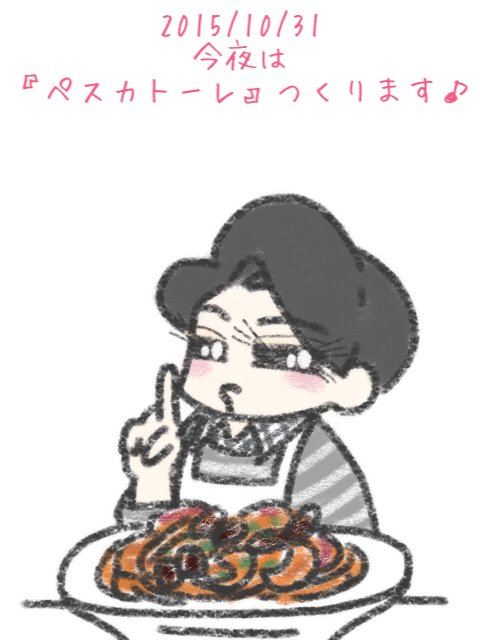 本日のイラストは「今夜のちゅーぼーは、またまたパスタ( ̄▽ ̄ゞ」