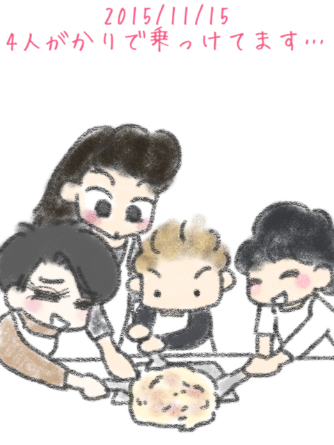 4人がかりで「へら(?)」の上に乗せるという共同作業( ̄▽ ̄;