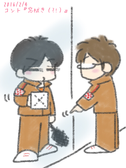 罰ゲームで「窓拭き」をすることになった、よしむぅちゃん。