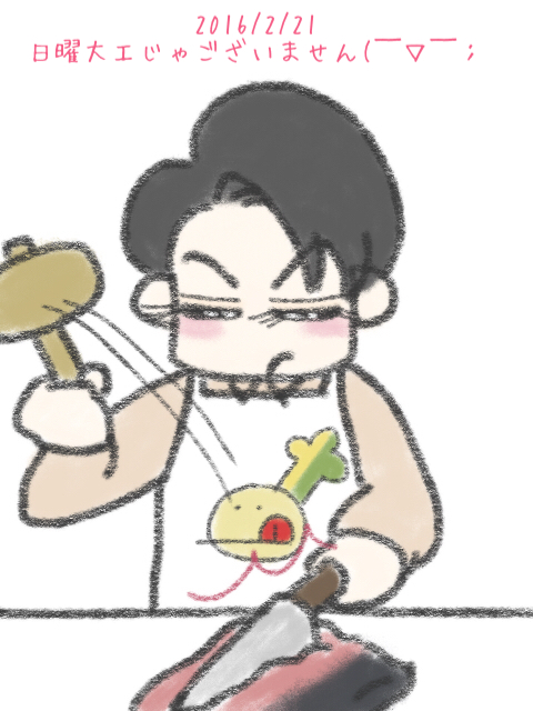 本日のイラストは「とんかち持って、ぶり大根( ̄▽ ̄;」