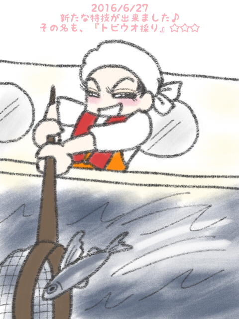 本日のイラストは「トビウオ採りならお任せあれ“o( ̄▽ ̄)o”♪」