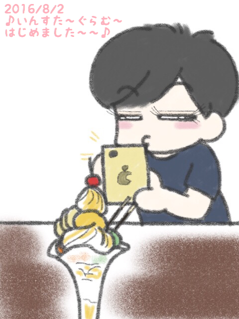 本日のイラストは「インスタ始めたよ〜“o( ̄▽ ̄)o”♪」
