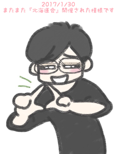本日のイラストは「忙しいのに“北海道会”もしっかり開催しとるとはっ( ̄▽ ̄♪」