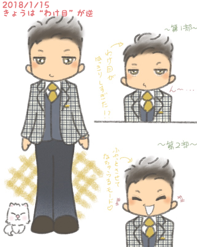 いつもとわけ目逆じゃったね。