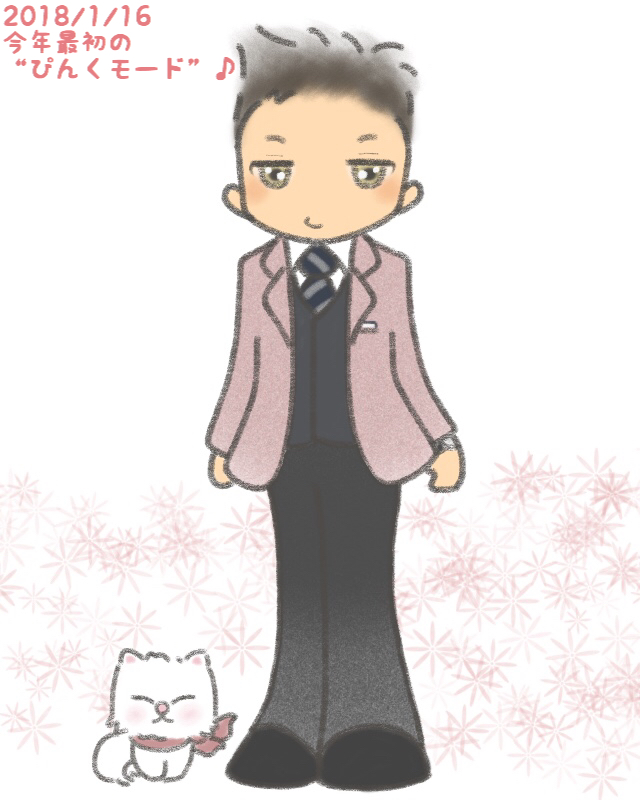 きょうはジャケットのピンク以外を紺と黒で揃えて、全体的に落ち着いた感じですね( ̄▽ ̄♪