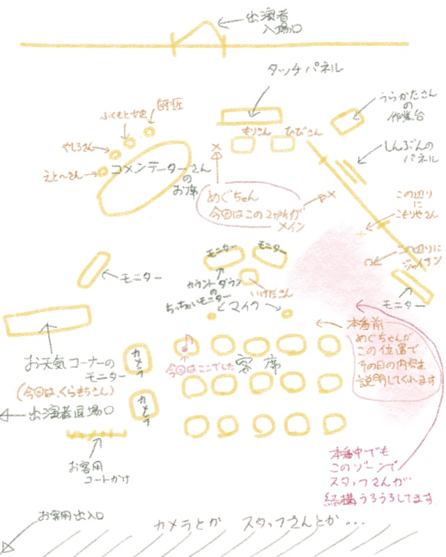 めぐちゃん、落ち着いたトーンで説明して、ほいでオープニングの定位置に着いて、