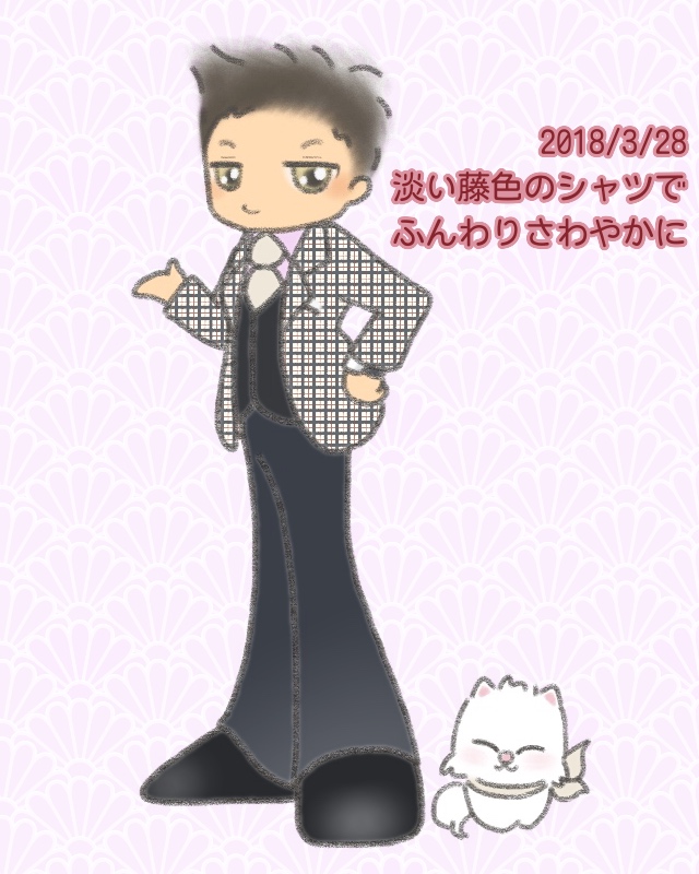 薄藤色のシャツに《まっ白》ではなくて《少し色のある白》をチョイスしたあたりが“おしゃれ”ですね♪