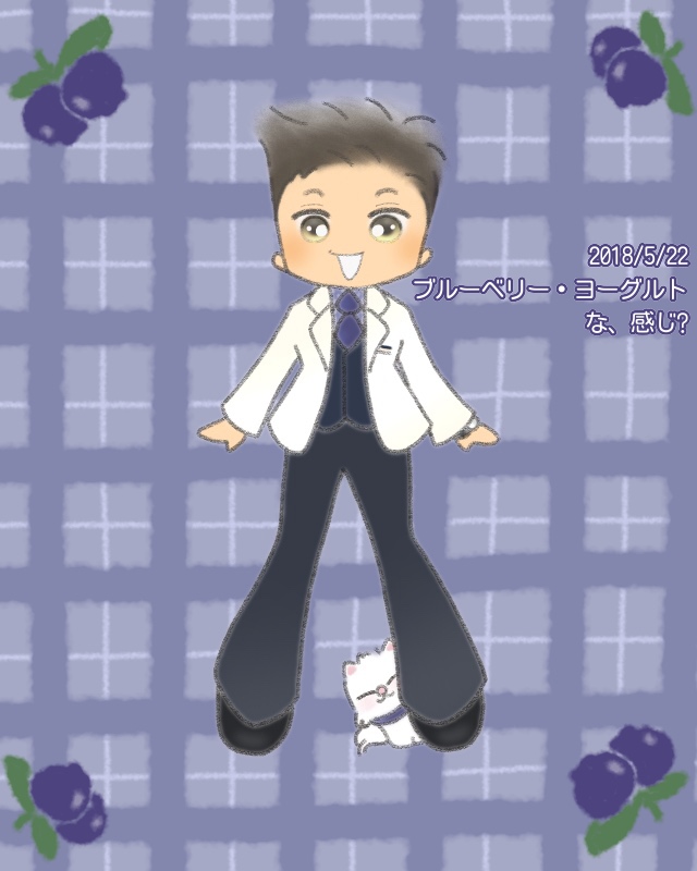 『きょうのお衣装のテーマはブルーベリー・ヨーグルト?( ̄▽ ̄ゞ』って