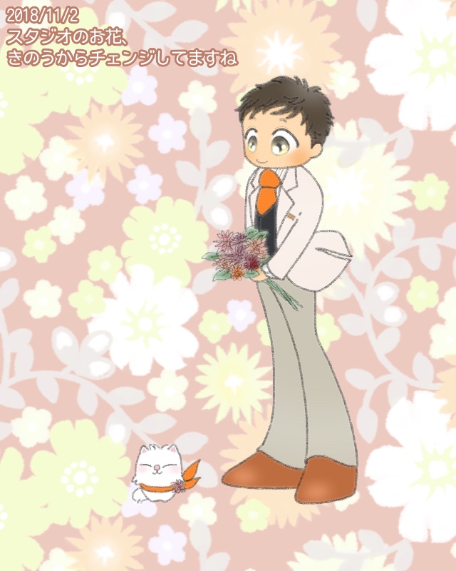 きのうからスタジオのお花が変わりましたね。