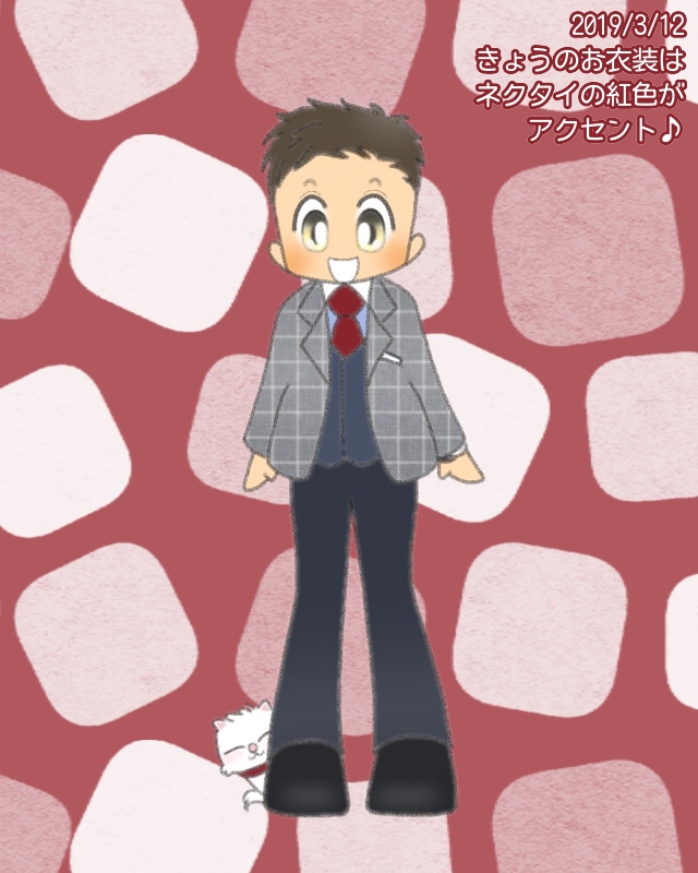きょうはネクタイの紅色がポイントですね( ̄▽ ̄)b”