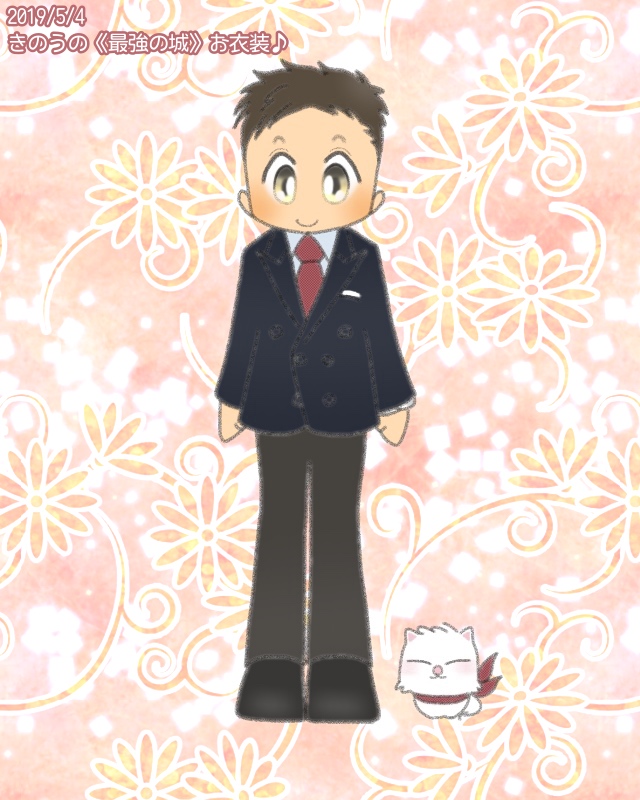 深い濃紺のダブルのジャケット(多分《横からひらひらモード》)、