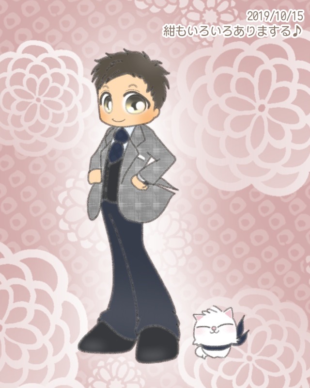 グレーに白のかすり模様風チェック柄の《横からひらひらモード》のジャケット、