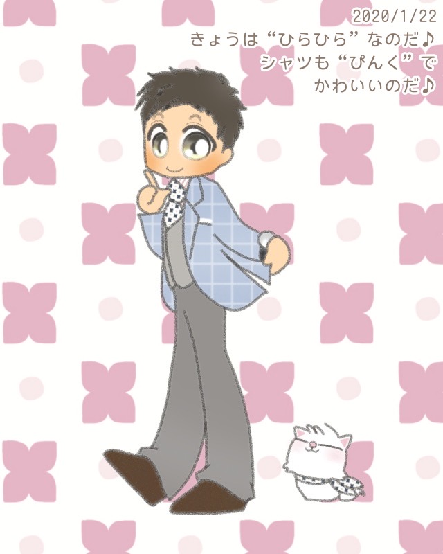 水色に白の大きめ方眼模様の《横からひらひらモード》のジャケット、
