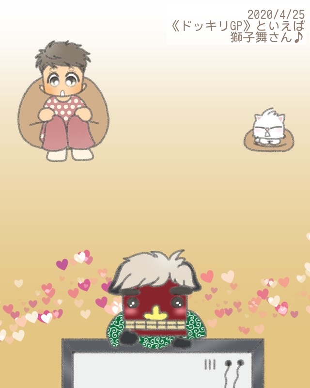 本日のイラスト:めぐちゃん編「《ドッキリGP》といえば、獅子舞さん♪」