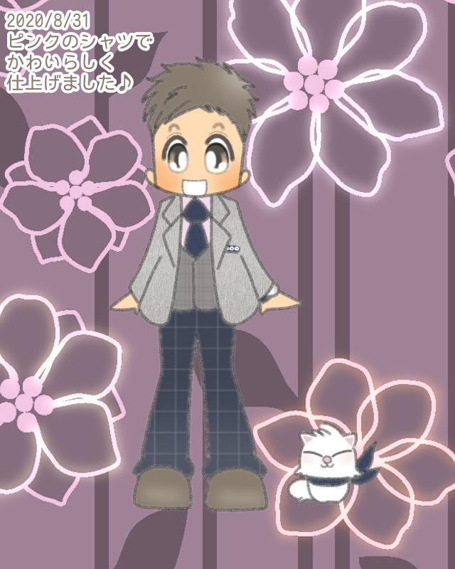 ピンクのシャツ(ややラベンダー系)、