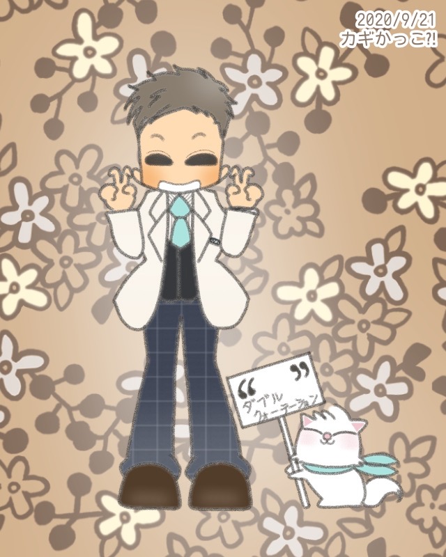 濃紺(黒?)に緑と白の細かい柄の胸元チーフ、
