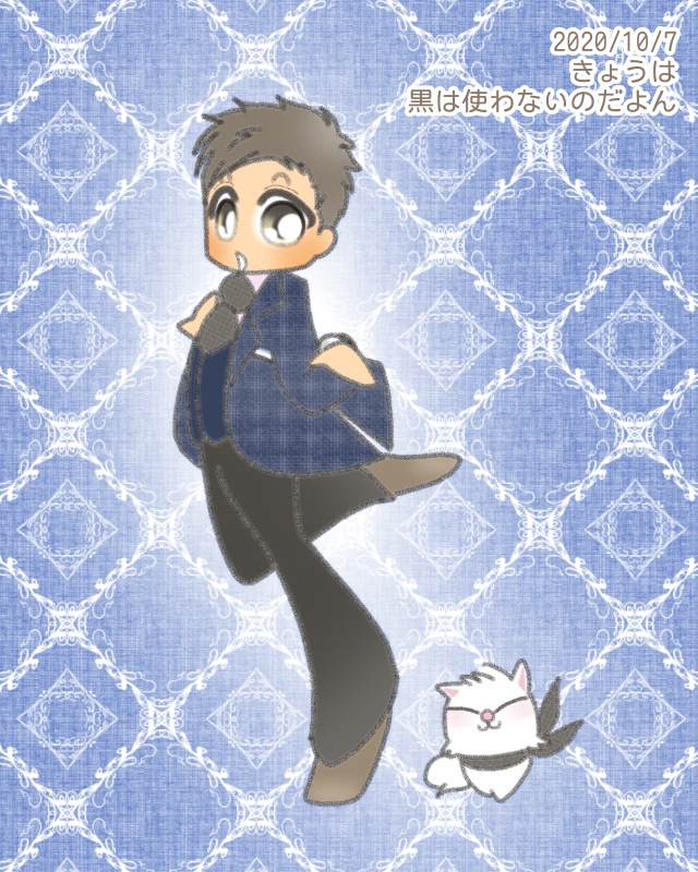 明るめ紺に白のかすり風チェック柄の《横からひらひらモード》のジャケット、