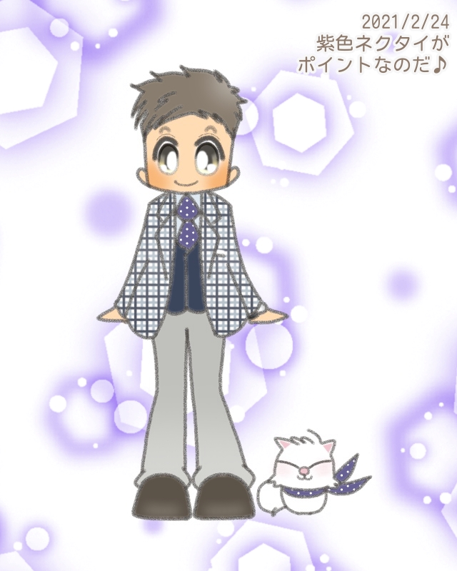 きょうは紫色のネクタイがポイントのコーデですね♪