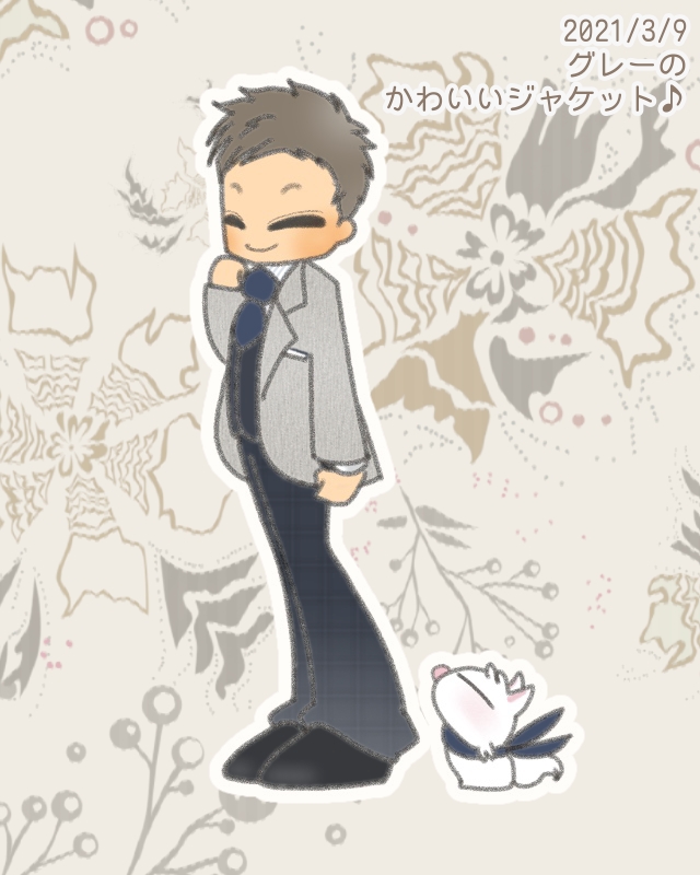 グレーのジャケットで