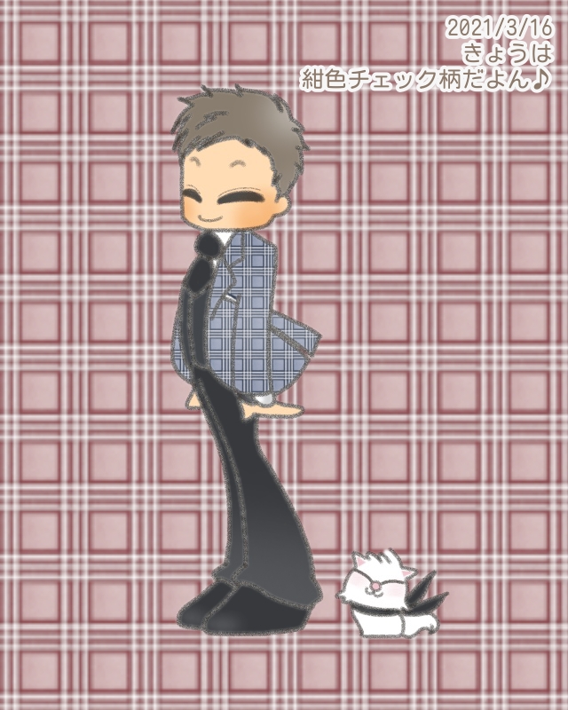 きょうは『紺色チェック柄ジャケット』と胸元チーフ以外は
