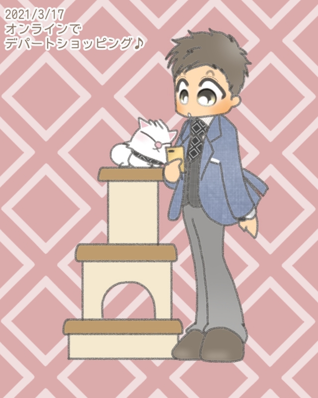 かすり風明るめ紺の《横からひらひらモード》のジャケット、