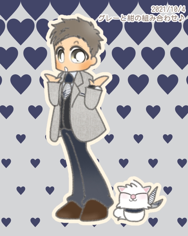 グレー系ホワイトに濃紺縁取りの胸元チーフ、
