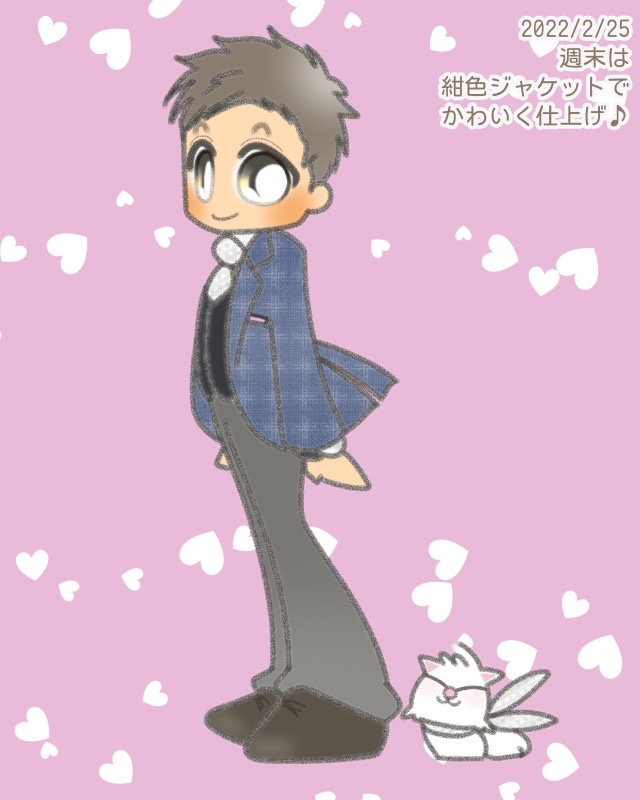 本日のイラスト:めぐちゃん編「週末は、紺色ジャケットでかわいく仕上げ♪」