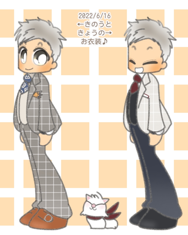 ベージュグレーに白の大きめ方眼模様のジャケット、