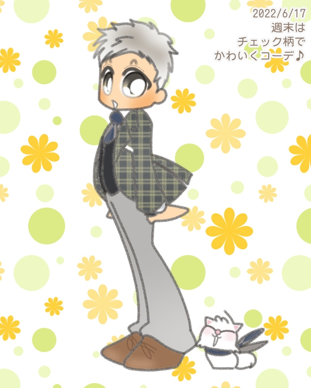 濃紺にレモン色チェック柄の《横からひらひらモード》のジャケット、