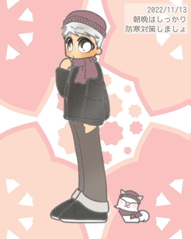 本日のイラスト:めぐちゃん編「朝晩はしっかり防寒対策しましょ」