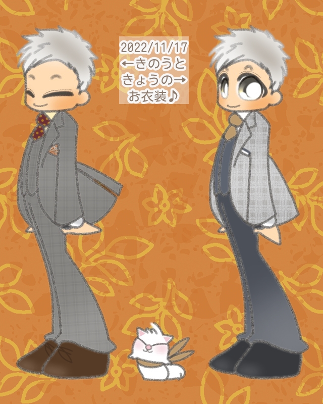 秋の樹々のような「黄土色のネクタイ」がポイントです♪