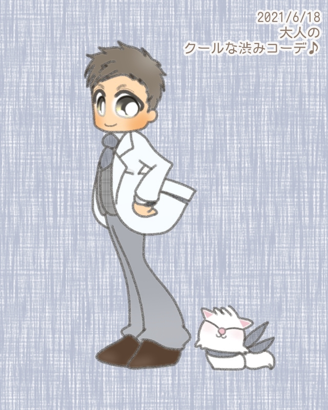 かすり風濃紺(ほぼ黒)に白の大きめ方眼模様のジャケット、